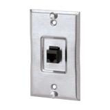 Stainless steel wall phone plate with one punchdown Category 6 keystone jack module.