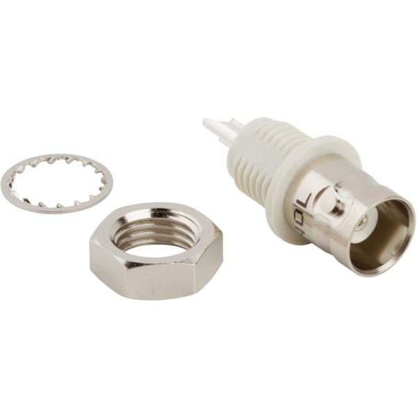 Two distinct types of 75 Ohm BNCs are available. Both mate with each other and with 50 Ohm BNCs. Type 1 is designated 75-T1 and provides constant 75 Ohm performance with low VSWR DC to 4 GHz. Type 2 is designated 75-T2 and is usable with low reflection DC to 1 GHz. For applications above 1 GHz, Type 1 is recommended. 0-4 GHz with low reflection at the end. 500 volts peak. For applications such as antennas, automotive, base stations, cable assemblies, cable modems, components, computers/LANs instrumentation, oscilloscopes, medical equipment mil-aero, radios, satcom, surge, protection and telecom.