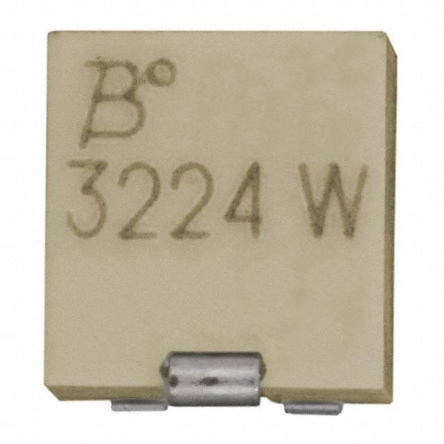 值Resistance | 2KΩ/Ohm \---|--- 额定功率Power| 0.25W,1/4W 容差Tolerance| ±10% 温度系数Temperature Coefficient| ±100ppm/°C 圈数Number of Turns| 12 调节类型Adjustment Type| 顶部调节 Top Adjustment 端子类型Termination Style| J引线 J Lead Description & Applications| ■ Surface Mount 4 mm Square / Multiturn Cermet / Industrial / Sealed ■ Sealed to withstand board wash processing ■ 4mm design meets EIA/EIAJ/IPC/VECI SMD standard trimmer footprint ■ Low CRV - 1 % ■ 3224 - 4 mm SMD Trimpot® Trimming Potentiometer 描述与应用| ■表面贴装4毫米/多圈金属陶瓷/工业/密封 ■密封承受冲洗电路板处理 ■4mm的设计符合EIA/ EIAJ/ IPC/ VECI的SMD标准微调足迹 ■低CRV - 1% ■3224 - 4毫米SMD器系列Trimpot®微调