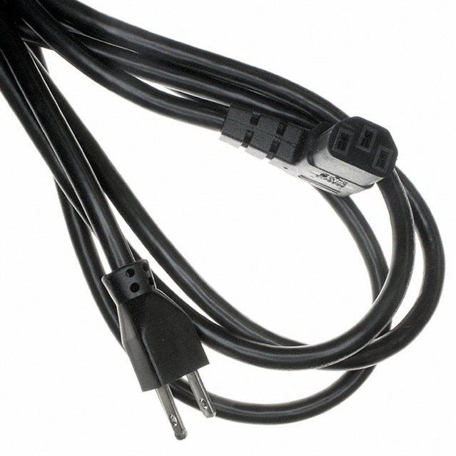 9.84"(3.00m) 电源线 黑色 NEMA 5-15P 至 IEC 320-C13,直角 SJT
