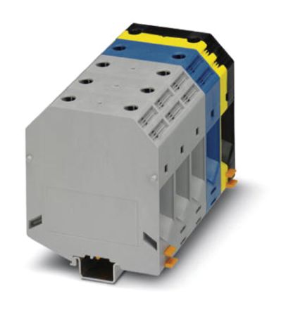 ukh通用高电压接线端子这些 Phoenix Contact 的高电流馈通端子块可确保可靠的电缆连接,这是因为棱柱形套管基座中具有三点定心导线。螺钉锁定可通过夹紧部件内的弹簧加载元件来实现。### 特点和优势• 可靠的电缆连接 • 接触面具有低接触电阻 • 夹紧部件内具有弹簧加载元件 • 直接螺钉连接 类型 | ukh50 | ukh95 ---|---|--- 尺寸W x L x Hns35/15 | 20x70.5x83.5mm | 25x83x97.5mm 尺寸W x L x Hns32 | 20x70.5x81.5mm | 25x83x95.5mm 易燃性等级 | UL 94-V0 | UL 94-V0 ### 认可UL, cUL, CSA