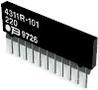 Conserve space and power by adopting this resistor array from Bourns, allowing multiple configurations of resistors to be downsized into an IC. Its temperature coefficient is ±100 ppm/°C. This product"s 8 resistors have a value of 100 Ohm. This dependable part has a power rating of 1.13 W and a power rating per resistor of 0.2 1/5 W. It has 9 terminals. It has a tolerance of 2%. This product"s terminal pitch is 2.54 mm. This device utilizes thick film technology. This part has an operating temperature of -55 to 125 °C. This product is 22.45 mm long, 4.95 mm tall and 2.16 mm deep. The 4309R-101-101LF part has a pin termination style.