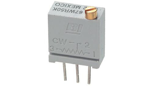 Place this 67WR1KLFTB potentiometer from BI Technologies TT electronics at critical points in a circuit and adjust the resistance for optimal functionality. This product has a resistance value of 1K Ohm. This durable part has a power rating of 0.5 1/2 W. Its temperature coefficient is ±100 ppm/°C. In order to ensure parts aren&s;t damaged by bulk packaging, this product comes in tube packaging to add a little more protection by storing the loose parts in an outer tube. This device utilizes cermet technology. This product is 9.53 mm long, 11.98 mm tall and 4.95 mm deep. The 67WR1KLFTB part has a pin termination style. This part has an operating temperature of -55 to 125 °C. It has a tolerance of 10%.