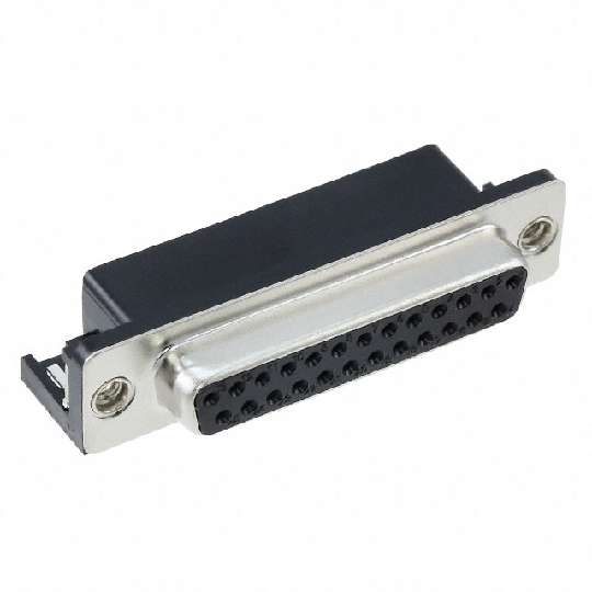 622 Series right angle D-Sub receptacle connector with 25 pin type contacts that have gold flash plating. The connector has ...