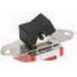 The is a DPDT non-illuminated through-hole-mount Miniature Rocker Switch compatible with ON-ON operation and vertical right-angle termination. It has black nylon standard concave standard V actuator, stainless steel housing and nickel-plated brass bushing.